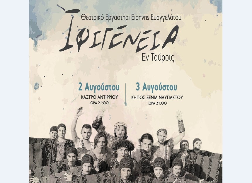Στο πλαίσιο των πολιτιστικών εκδηλώσεων του Δήμου Ναυπακτίας για το Καλοκαίρι του 2020, σε συνδιοργάνωση με την Εφορεία Αρχαιοτήτων Αιτωλοακαρνανίας και Λευκάδος και τα Εκπαιδευτήρια Πάνου παρουσιάζεται από το Θεατρικό Εργαστήρι της Ειρήνης Ευαγγελάτου-Δρώντων Κάθαρσις η καίρια ιλαροτραγωδία αμφισβήτησης των αξιών και των θεσμών, «Ιφιγένεια η Εν Ταύροις» του Ευριπίδη.