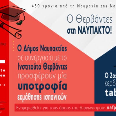 Ο Δήμος Ναυπακτίας και το Ινστιτούτο Θερβάντες προσφέρουν μία υποτροφία για μαθήματα ισπανικών «O CERVANTES ΣΤΗ ΝΑΥΠΑΚΤΟ!» Με την ευκαιρία...