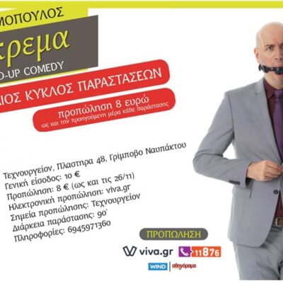 O Δημήτρης Δημόπουλος επιστρέφει στη Ναύπακτο, παρουσιάζοντας για πρώτη φορά στον πολυχώρο “Τεχνουργείον” το Σάββατο 27 Νόμεβρη, την...