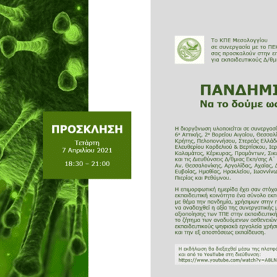 Διαδικτυακή ημερίδα για εκπαιδευτικούς Δ/θμιας Εκπ/σης με θέμα «Πανδημία: να το δούμε ως ευκαιρία» θα διεξαχθεί σήμερα, Τετάρτη...