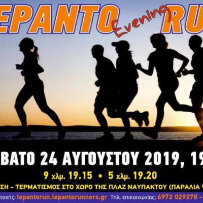Ο Δήμος Ναυπακτίας και ο Σύλλογος Δρομέων “Lepanto” προκηρύσσουν το Σάββατο 24 Αυγούστου 2019 τους δρομικούς αγώνες “2nd...