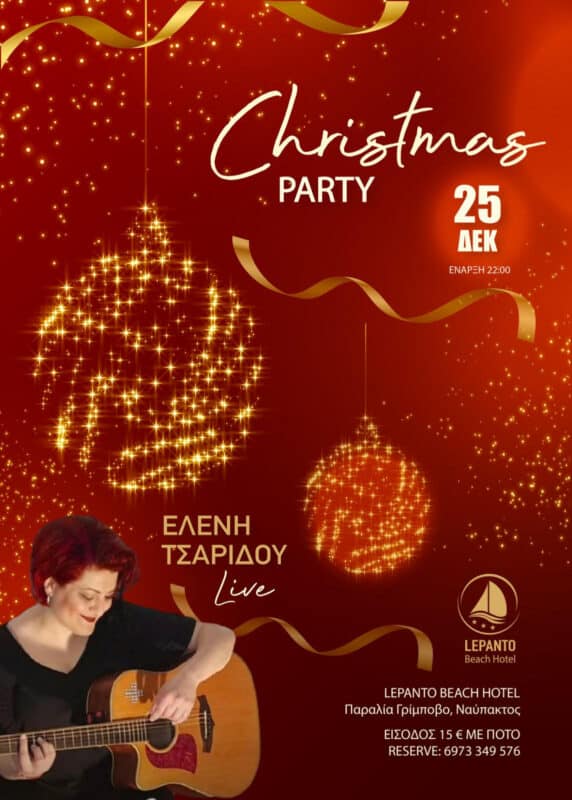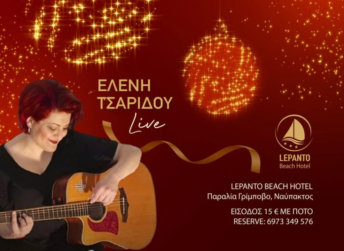 Τα Χριστούγεννα στη Ναύπακτο έχουν τον τρόπο τους να γίνονται πιο ζεστά. Και φέτος, ανήμερα Χριστουγέννων, η μουσική βρίσκει τον χώρο της στο Lepanto Beach Hotel, με την Ελένη Τσαρίδου να έρχεται για μια ξεχωριστή live εμφάνιση.