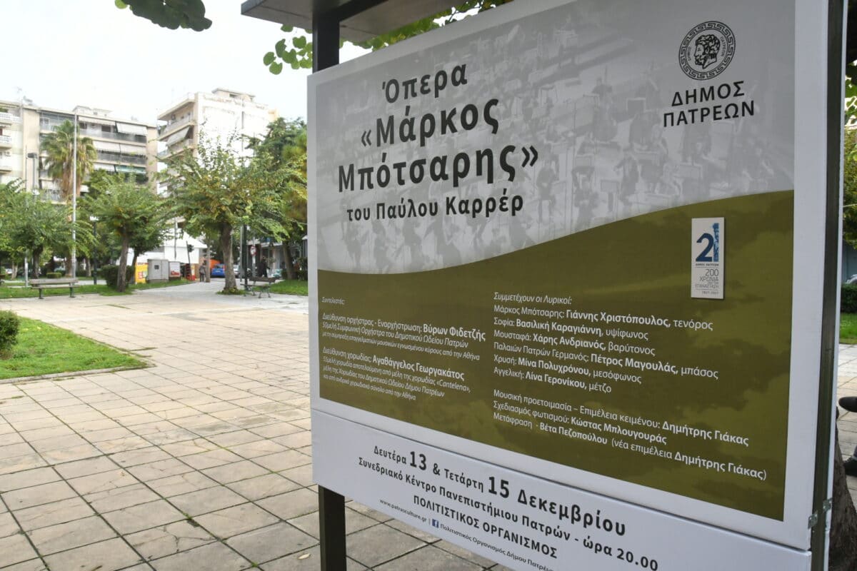 Με την πραγματοποίηση της όπερας ολοκληρώνεται ο κύκλος των εκδηλώσεων που διοργάνωσαν ο Δήμος της Πάτρας και ο Πολιτιστικός του Οργανισμός για τη συμπλήρωση 200 χρόνων από την ελληνική επανάσταση του ‘21.