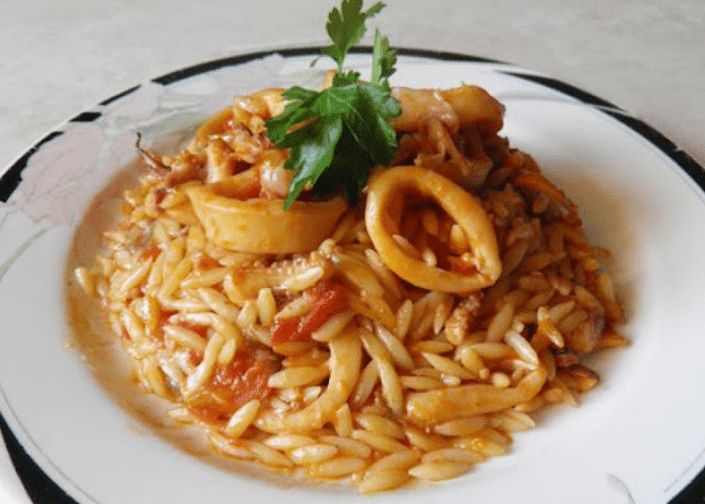 Αν δεν έχεις απολαύσει κριθαρότο με καλαμάρι και πορτοκάλι δεν ξέρεις τι χάνεις. Σε πρώτο πλάνο, ο συνδυασμός των γεύσεων του καλαμαριού με το πορτοκάλι στο άψογα al dente κριθαρότο θα σε κάνει να παραμιλάς.