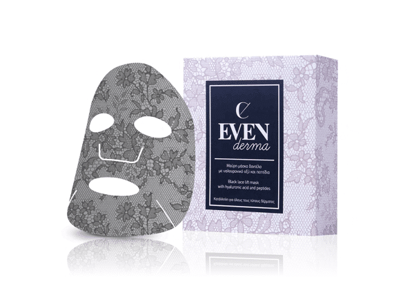 EvenDerma Black Lace Lift Regenerating Mask: Μαύρη μάσκα δαντέλα με υαλουρονικό οξύ και πεπτίδια. Ενυδατώνει, συσφίγγει και βελτιώνει την φωτεινότητα του δέρματος.