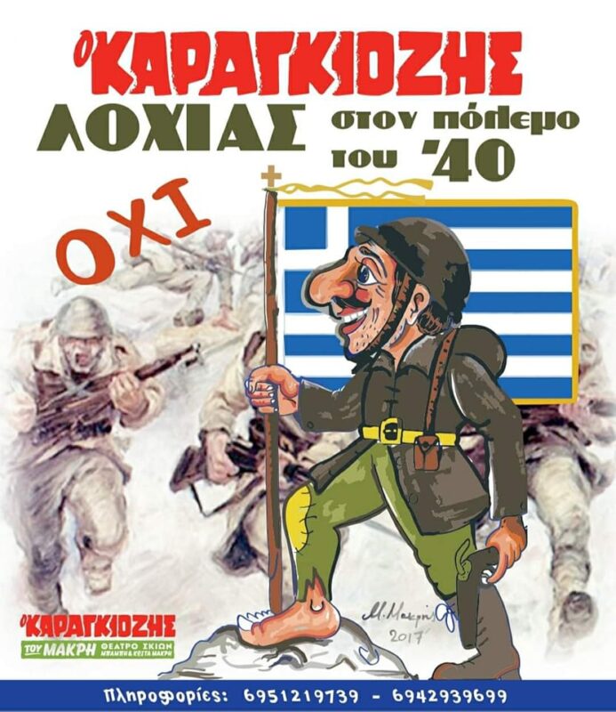 Μια παράσταση – ύμνος στο έπος του ’40 από τον Καραγκιόζη του Μακρή για όλη την οικογένεια! Στoν πολυχώρο «ΤΕΧΝΟΥΡΓΕΙΟΝ» [Πλαστήρα 48], για 1 μόνο παράσταση την Κυριακή 30 Οκτωβρίου στις 6 το απόγευμα.