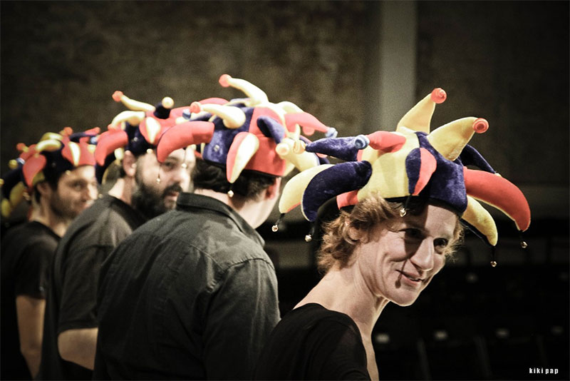 Όπως ανέφερε το δελτίο τύπου της παράστασης “το Mistero Buffo ανεβάστηκε ακριβώς με τον τρόπο που επιθυμούσε και ο ίδιος ο συγγραφέας του, χωρίς σκηνικά, κοστούμια, φωτισμούς”.