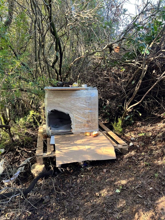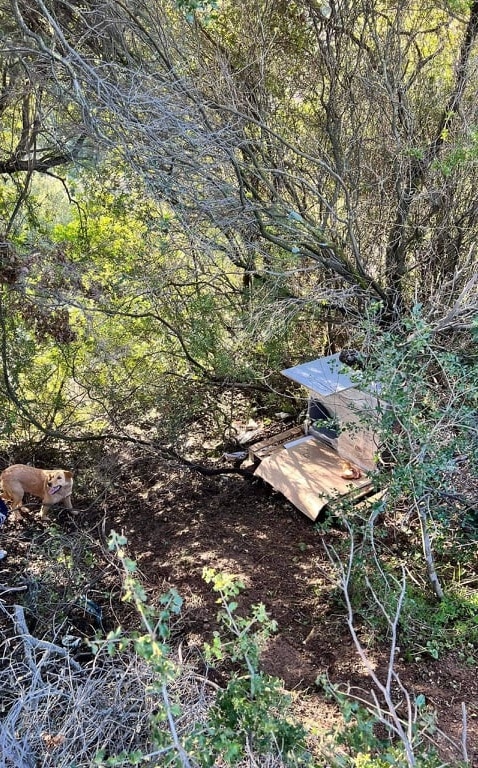Όπως θα δείτε στις φωτογραφίες που ακολουθούν διαμόρφωσε και καθάρισε ένα χώρο μέσα στο δάσος, στον οποίο τοποθέτησε σπιτάκι, ώστε να προφυλάσσεται η σκυλίτσα από τις καιρικές συνθήκες.