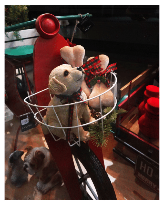 Η πρώτη βιτρίνα, ντυμένη στα μπορντό και κόκκινα, είναι ένας ύμνος στην παράδοση. Το χριστουγεννιάτικο καρώ παντρεύεται με ριγέ φιόγκους στα κηροπήγια, ενώ ένα ξύλινο έλκηθρο γεμάτο δώρα συνοδεύεται από έναν ξύλινο σκύλο, τον πιστό φίλο κάθε σπιτιού. Ένα γιγάντιο στεφάνι με LED λαμπιόνια φωτίζει τη σκηνή, και χαρτονένια δέντρα σε στυλ οριγκάμι, σε σκανδιναβικές αποχρώσεις του μπορντό, προσθέτουν τη μοντέρνα πινελιά που κάνει τη διαφορά.