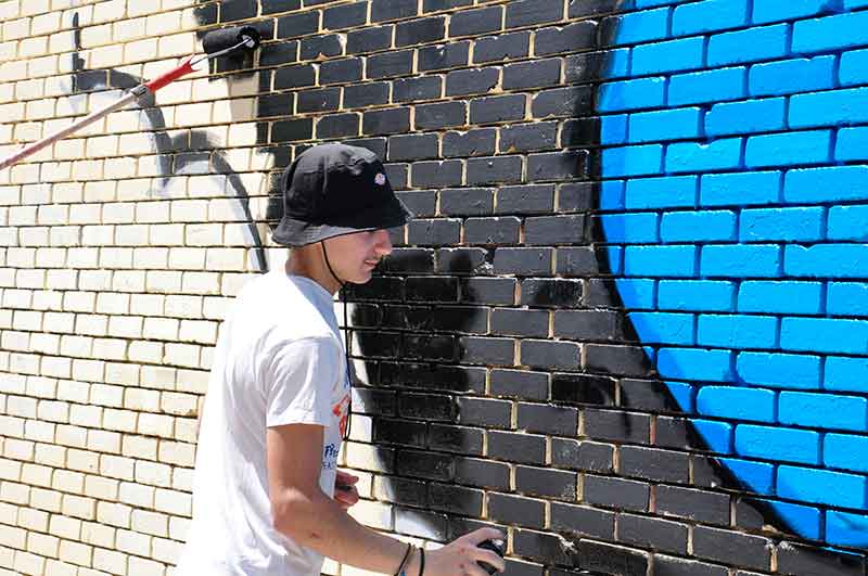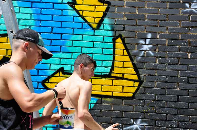 Με τα χρώματα να κυριαρχούν και να ξεχωρίζουν στην δυτική πλευρά της αυλής του σχολείου: το μπλε του ποταμιού, το μαύρο της νύχτας, το πράσινο των δέντρων και των ποταμιών, το κίτρινο της αισιοδοξίας, το γκραφίτι είναι υπέροχο αισθητικά.