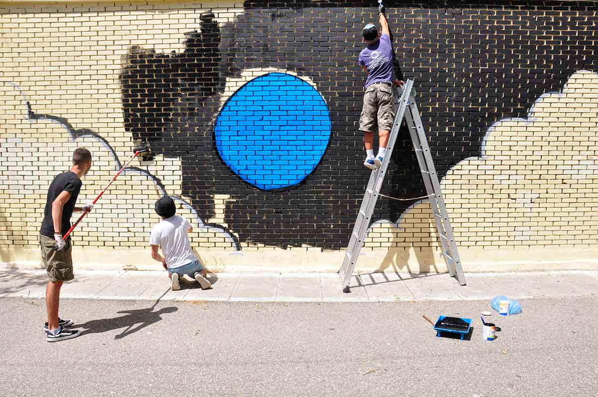 Το γκραφίτι έγινε σε συνεργασία με τη διεύθυνση του Γυμνασίου, που συνείσφερε στο project. Εξάλλου, εδώ και χρόνια αντίστοιχες πρωτοβουλίες εντάσσονται στο πλαίσιο του προγράμματος «Ζωγραφίζοντας Σχολικά Κτήρια», που τελεί υπό την αιγίδα του υπουργείου Παιδείας και υλοποιείται από την Urban Act στα σχολεία όλων των εκπαιδευτικών βαθμίδων ανά την Ελλάδα.