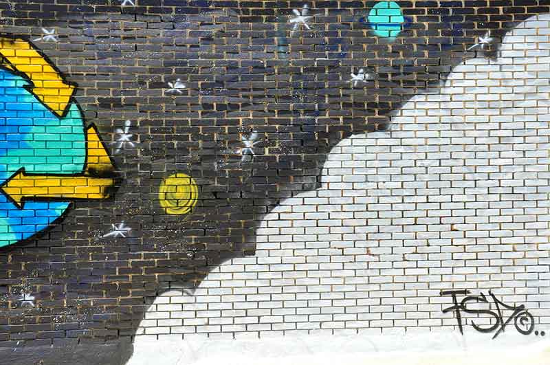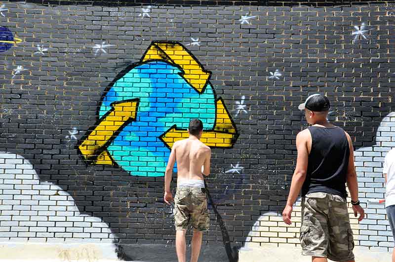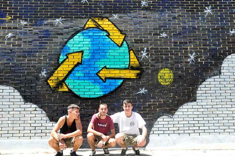 Το σήμα της ανακύκλωσης να αγκαλιάζει την γη απεικονίζεται στο γκραφίτι που σχεδιάστηκε από τρεις μαθητές στο 1ο Γυμνάσιο Ναυπάκτου.