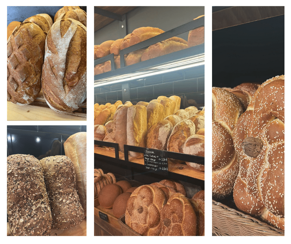 Εδώ θα βρεις ψωμί με προζύμι, «το ψωμί της γιαγιάς», όπως το λένε – γιατί θυμίζει το παλιό ζυμωτό. Θα βρεις μισοφέγγαρο με σουσάμι, σουσαμένιο, μαργαρίτα, μπαγκέτες, λευκό, σταρένιο, πολύσπορο, ολικής, χωριάτικο (που δεν προλαβαίνει να μείνει). Και φυσικά, μπομπότα. Από τις καλύτερες που έχω δοκιμάσει – και το λέω εγώ, με καταγωγή από Θεσσαλία. Σωστό καλαμπόκι, σωστές αναλογίες, καθαρή γεύση.