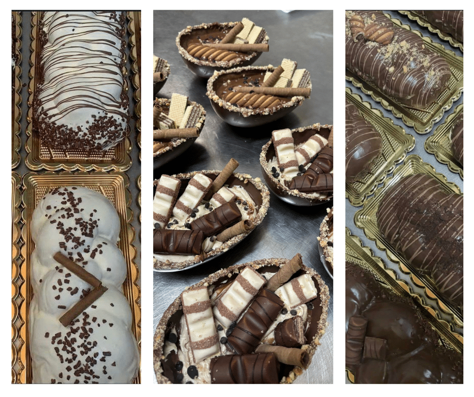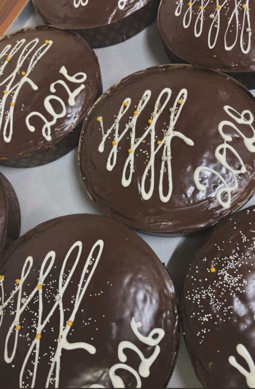 Στο εργαστήριο τώρα, οι Φωτεινή, η Αρετή και η μαμά τους ετοιμάζουν με μεράκι τις βασιλόπιτες: αφράτες, αρωματικές, με ζύμη που μοσχοβολά βούτυρο και πορτοκάλι, με γλάσο ή σοκολατένια επικάλυψη – μικρά έργα τέχνης που περιμένεις να απολαύσεις με το πρώτο κομμάτι.