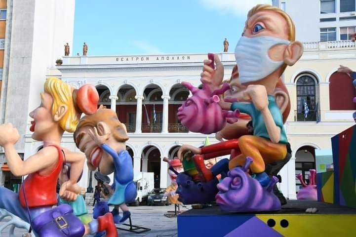 Από την πλευρά της, η διευθύντρια αρχιτεκτονικού σχεδιασμού, Ελένη Αλεξοπούλου, είπε ότι «επειδή φέτος δεν μπορεί, λόγω των μέτρων κατά του κορονοϊού, να γίνει το παιχνίδι του κρυμμένου θησαυρού στην πλατεία Γεωργίου, αποφασίσαμε να στήσουμε εκεί ένα άρμα που έχει αναφορά στον κορονοϊό».