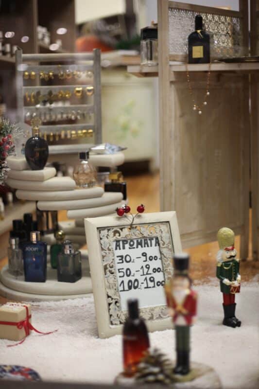 Ένα άρωμα είναι πάντα ένα πολύ ιδιαίτερο δώρο και στο αρωματοπωλείο με την υπέροχη χριστουγεννιάτικη βιτρίνα θα βρεις εκείνα τα πραγματικά σπάνια αρώματα που η μυρωδιά τους δεν θυμίζει παρά μόνο ευχάριστες αναμνήσεις από γιορτές.