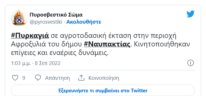 Σε εξέλιξη βρίσκεται πυρκαγιά που ξέσπασε σε αγροτοδασική έκταση στην περιοχή Αφροξυλιά του δήμου Ναυπακτίας. Για την κατάσβεση της φωτιάς κινητοποιήθηκαν επίγειες και εναέριες δυνάμεις της Πυροσβεστικής.