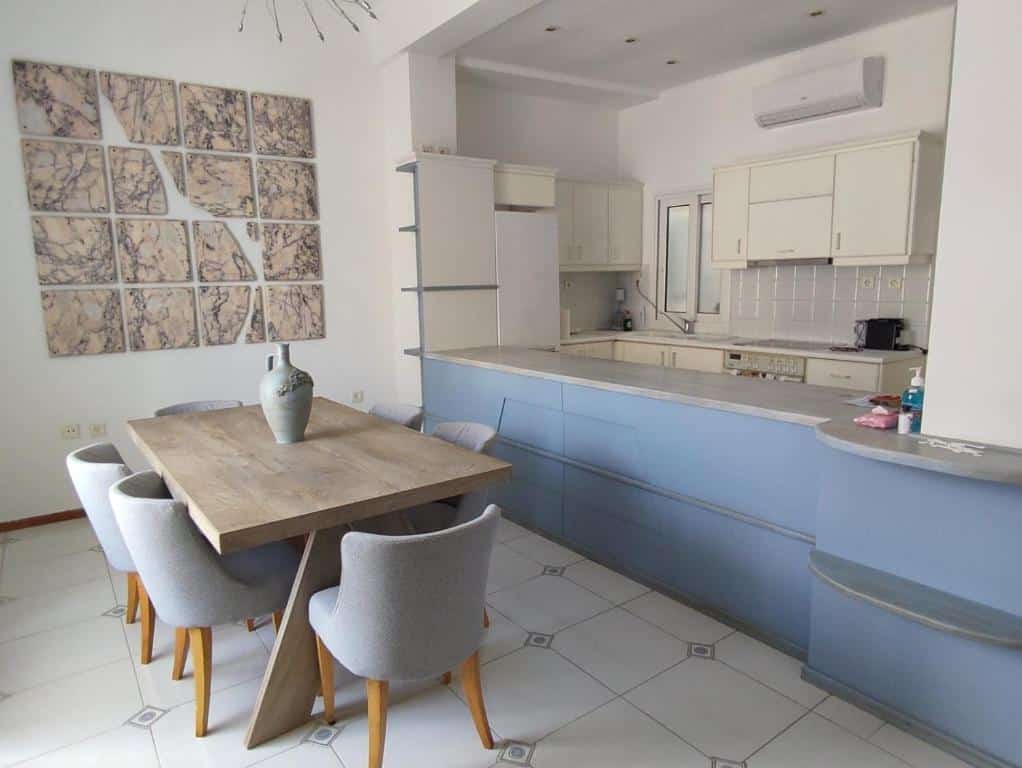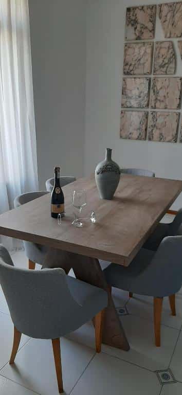 Το διαμέρισμα των 140 τ.μ. μπορεί να φιλοξενήσει έως και 10 επισκέπτες. Διαθέτει 3 υπνοδωμάτια με δύο υπέρδιπλα, ενώ το σαλόνι παρέχει έναν άνετο διπλό καναπέ-κρεβάτι. Επίσης προσφέρει ένα ευρύχωρο μπαλκόνι με θέα τη θάλασσα και το ενετικό λιμάνι, ένα άνετο καθιστικό, μία πλήρως εξοπλισμένη κουζίνα με τραπέζι φαγητού και απέχει μόνο 3 λεπτά από τις δύο κοντινότερες παραλίες της πόλης [την Ψανή στα δυτικά και το Γρίμποβο στα ανατολικά]. Ένα επιπλέον πλεονέκτημα είναι πως βρίσκεται στο κέντρο της πόλης και έχει απόλυτα εύκολη πρόσβαση στην τοπική αγορά.