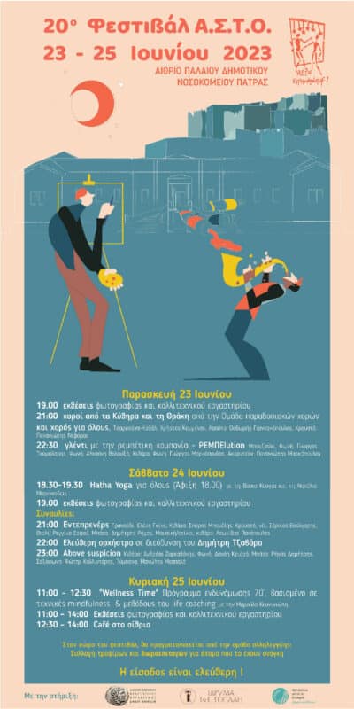 Ο ΑΣΤΟ-Επικοινωνούμε πραγματοποιεί για 20η χρονιά το ετήσιο Καλλιτεχνικό Φεστιβάλ, στις 23 – 25 Ιουνίου 2023 στο Αίθριο του Παλαιού Δημοτικού Νοσοκομείου.