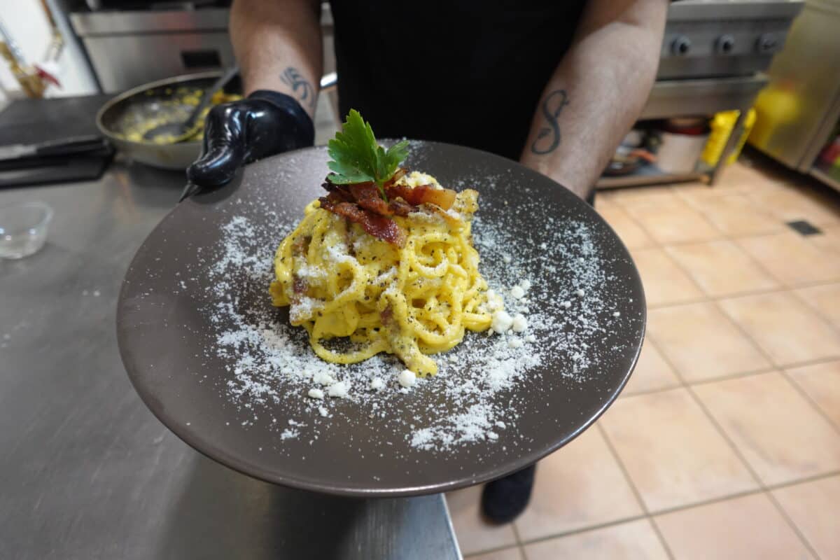 Και ενώ κρυφοκοίταζα στην κουζίνα την ώρα που ο σεφ Αντόνιο ετοίμαζε την καρμπονάρα, με εκείνη τη χαρακτηριστική σιγουριά ανθρώπου που το έχει κάνει χίλιες φορές, γύρισε και μου είπε : «Το μυστικό είναι τα σωστά υλικά – αλλά κυρίως, να αγαπάς αυτό που φτιάχνεις. Και να τρως τα ζυμαρικά σου al dente.»