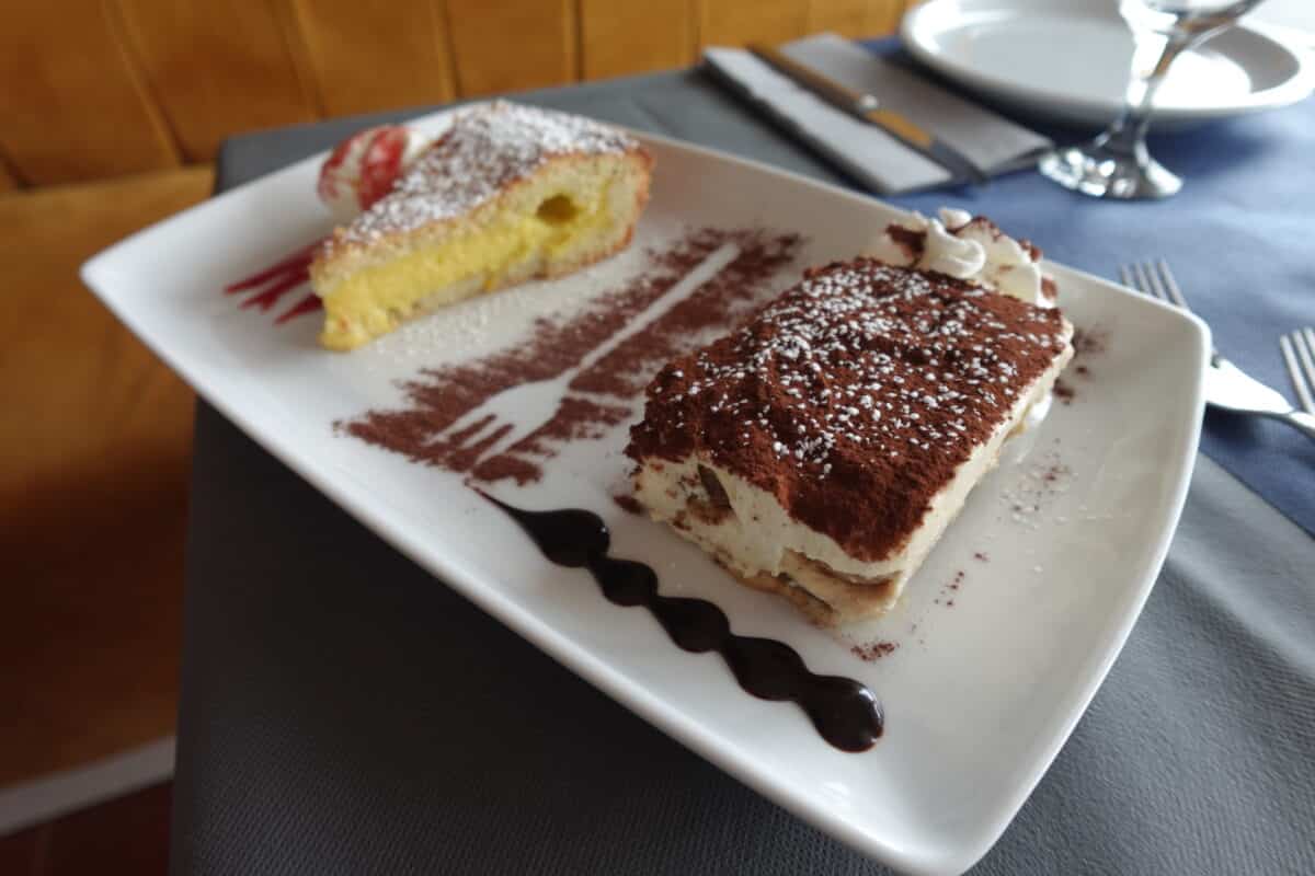 Αν πάλι αγαπάς τα γλυκά, όπως εγώ, αφήσε χώρο για το πιο εντυπωσιακό φινάλε. Μου σέρβιραν torta pasticciotto – μια παραλλαγή της πάστα φλόρα με κρέμα ζαχαροπλαστικής – και φυσικάτιραμισού, το οποίο ήταν ανάλαφρο και φίνο. Ποιος να μου το έλεγε τελικά ότι κάποιες γεύσεις που νόμιζα πως θα τις ζήσω μόνο σε ταξίδια θα βρισκόταν λίγα χιλιόμετρα από το σπίτι μου.